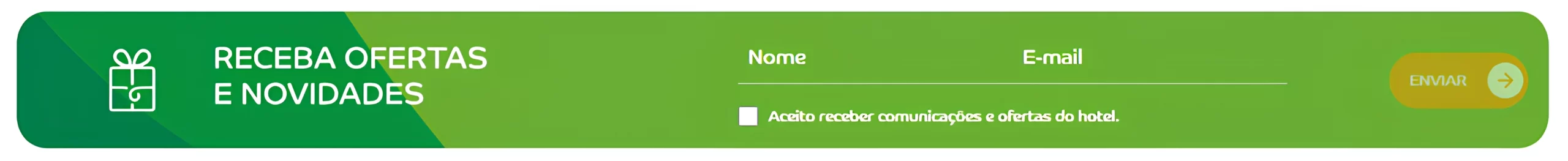 Ao enviar, estará ciente de que seus dados serão tratados pelo hotel com a finalidade exclusiva de envio de ações de marketing.